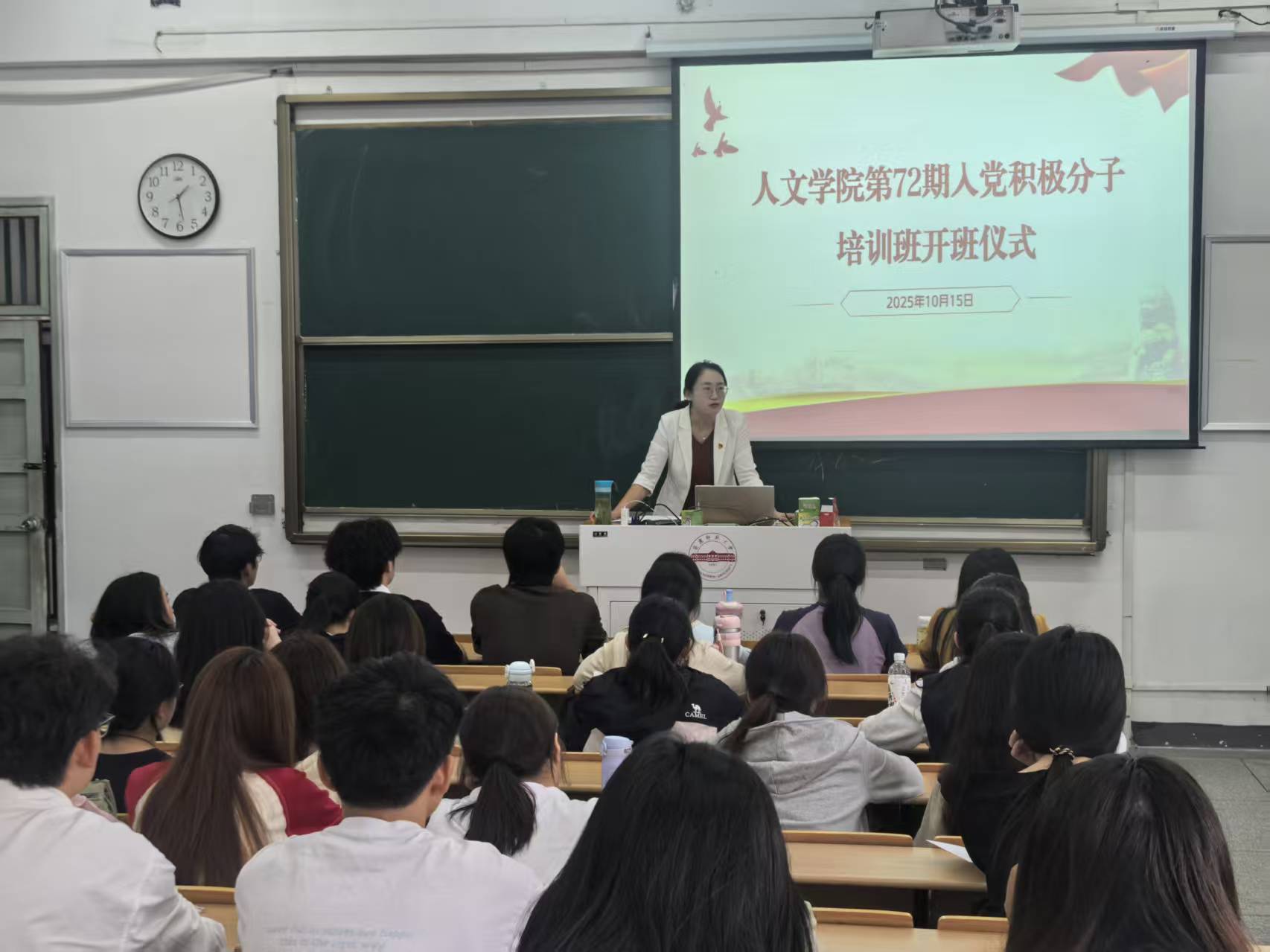 会上,培训班负责人宣读了《伟德国际victor1946分党校第72期入党积极分子培训班方案》,介绍了本次培训的课程内容、学习重点、纪律要求与考核办法。学员代表,2024级汉语言文学文典班陈姝馨作表态发言,她结合自身参与员工工作、“返家乡”“三下乡”等实践经历,表达了将以党员标准严格要求自己,力争早日成为合格的社会主义建设者和接班人。