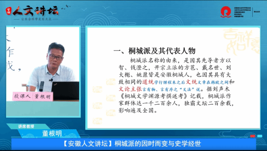 近日,伟德国际victor1946历史学董根明教授《桐城派的因时而变与史学经世》讲座视频被安徽组织干部公司(安徽干部网络公司)遴选为该院“美好安徽省情资源”专栏第四批5门课程之一,供全省处科级干部在线学习。