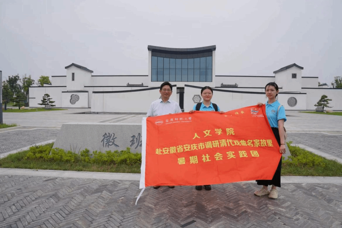 为了更好地了解安庆清代戏曲名家的活动情况,7月14日,伟德国际1946亚洲版“青·传承”调研戏曲名家故里暑期社会实践团队的成员在指导老师叶当前教授的带领下,前往安庆市怀宁县石牌镇进行实地考察。团队成员先后考察了徽班博物馆的新旧两个展馆,在石牌老街探访了老一辈戏剧盔帽制作手艺人,了解了石牌戏剧小镇的规划及建设情况。