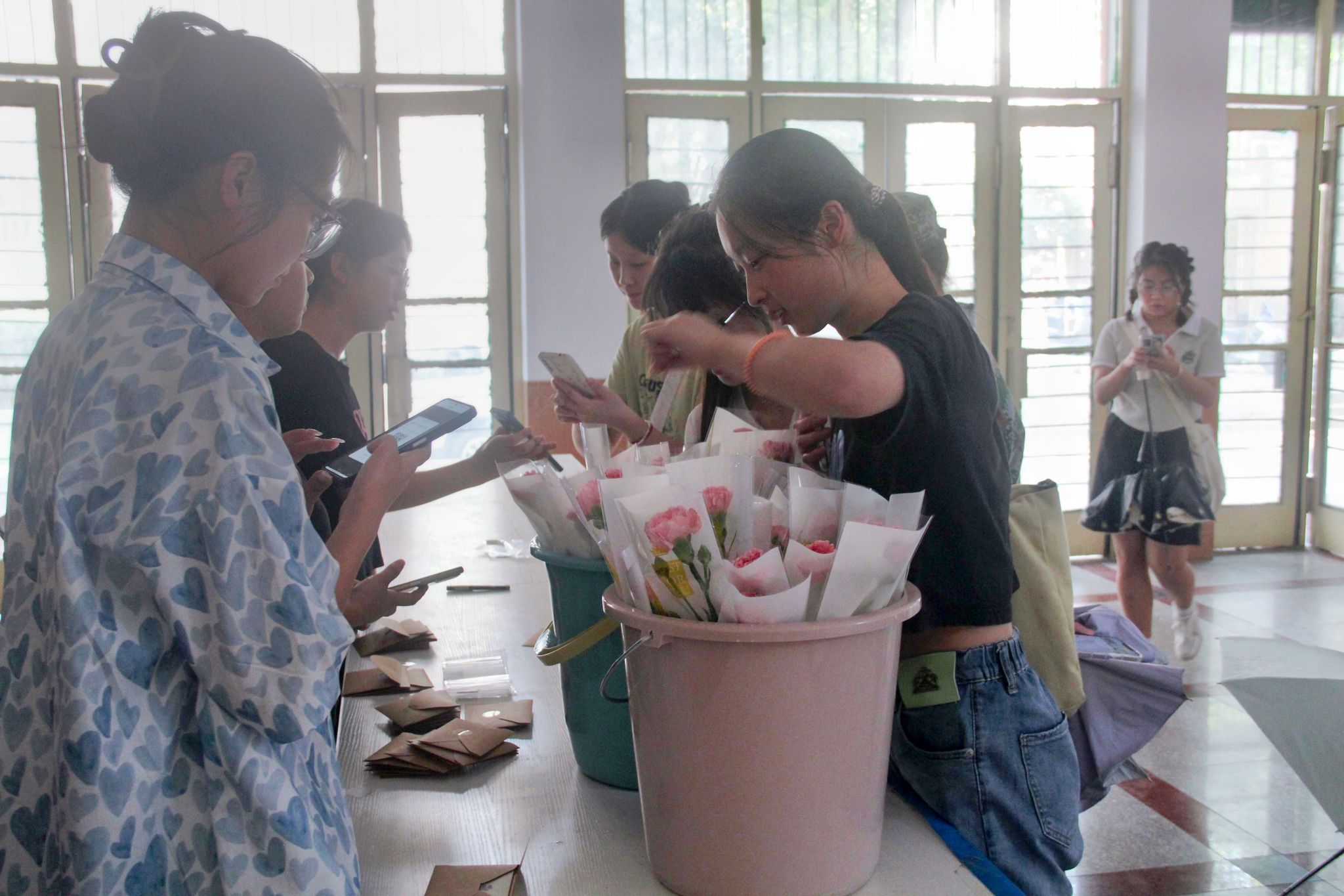 “师者悉心,永记心间。师情不却,师恩永存。”22级历史学一班的王煦宁同学认真地在贺卡上写下这句祝福语。周红兵老师颇为感慨地说到:“纸短情长,在同学们写给老师的贺卡中,我深刻感受到了大家对老师们的浓浓谢意和真挚祝福。一朝沐杏雨,终生念师恩,此次活动让同学们将自己对老师的爱意与敬意表达出来,真的非常有意义!”陆续而来的同学们纷纷在贺卡上写下祝福语,领取鲜花……浓厚的节日氛围遍及公司每一角落。