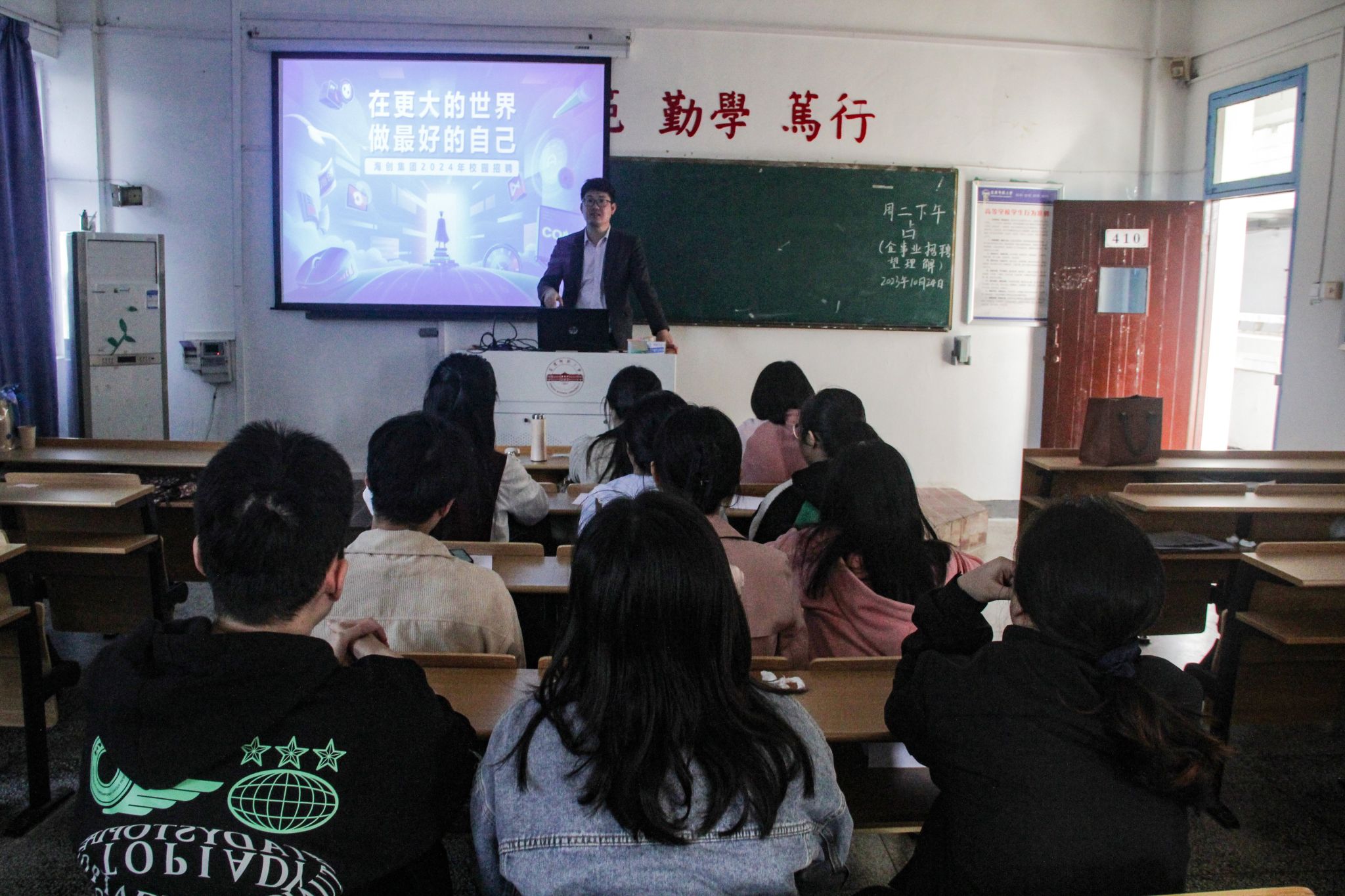10月24日,伟德国际victor1946在教学楼410举行了2024届毕业生首场企业类专场招聘会,吸引了三十多名毕业生前来应聘。本次招聘会分为企业代表宣讲、员工自由提问和现场投递简历三个部分。