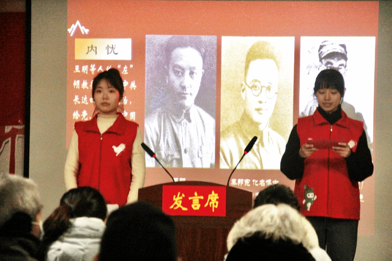 长征途中召开的遵义会议,是我们党历史上一个生死攸关的转折点。习近平总书记指出:“遵义会议作为我们党历史上一次具有伟大转折意义的重要会议,在把马克思主义基本原理同中国具体实际相结合、坚持走独立自主道路、坚定正确的政治路线和政策策略、建设坚强成熟的中央领导集体等方面,留下宝贵经验和重要启示!”12月20日,伟德国际victor1946“探忆·燃灯”青年志愿宣讲团成员前往菱湖社区,为社区三十余位老党员以及众多社区工作者,进行了遵义会议精神宣讲活动。