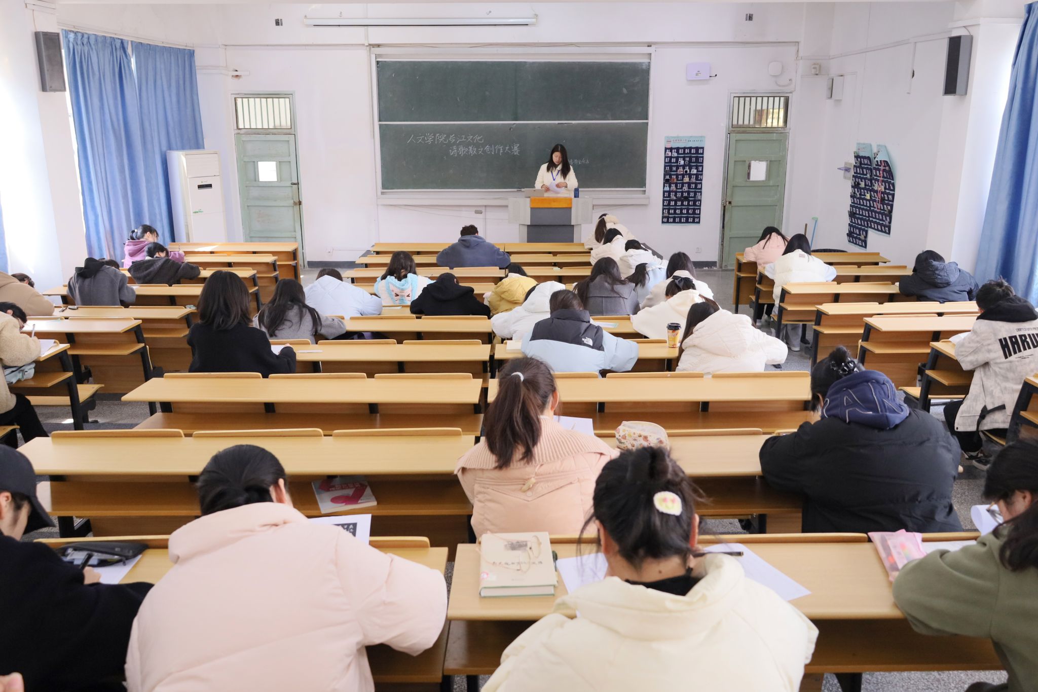 “每个人需要以长江文化为主题,结合安庆地方特色,在两个小时内即兴创作一篇散文或诗歌。”随着监考官宣布作品要求,以“传承长江文脉,书写时代新篇——谱写新时代‘长江之歌’”为主题的长江文化诗歌散文创作大赛顺利开赛,全校150名员工参与比赛。本次活动由伟德国际victor1946和长江文化研究院联合举办,伟德国际victor1946团委和《季节风》杂志承办,老员工白鲸文学社、老员工红楼诗会、老员工敬敷文学创造社等社团联合协办。
