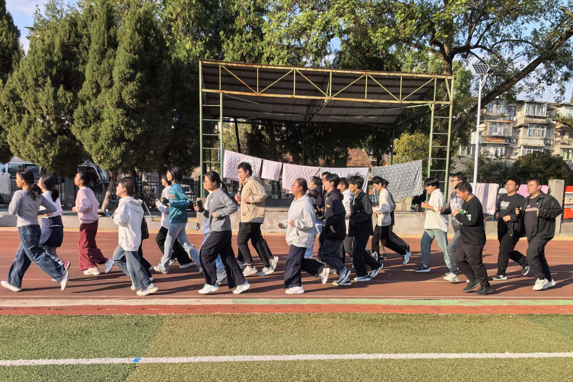 活动开始,公司体育运动指导教师潘源针对同学们跑步中易出现的耐力不足、节奏不稳等问题进行现场示范与指导,帮助同学们掌握正确的摆臂、跨步动作与呼吸方法。“经过老师的点拨,我纠正了错误的姿势,运动节奏感觉更顺畅了。”2025级中国语言文学类专业文典班的薛佳同学说。