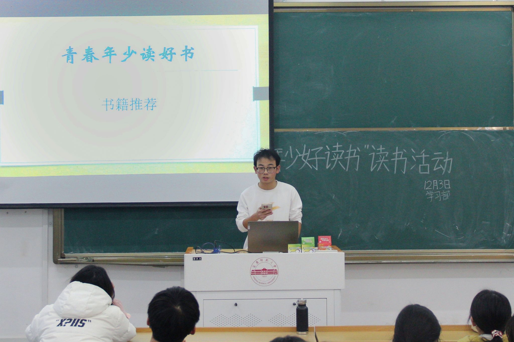 12月6日,伟德国际victor1946团委、员工会于教学楼214教室举办“青春年少好读书”主题活动,通过员工领读、经典诵读、心得分享等形式,让同学们在交流中碰撞思想、在品读中感悟真谛。