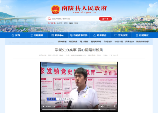 2021年7月,支部成员前往安徽省芜湖市南陵县开展三下乡实践活动,以“挖掘地方红色文化”、“宣讲红色文化”与“探索红色文化进课堂的方法”作为实践主题。在参观当地红色文化纪念馆、采访革命烈士家属、搜集红色故事的基础上,走进和顺社区宣讲红色文化。后期调研报告从家庭教育、公司教育和社会教育三个方面给出有效提升红色文化教育进课堂的实现路径,获评校级优秀调研报告三等奖。相关活动内容在中青网、南陵县人民政府官网、公司官网、公司官网等网站上累计报道10余次。