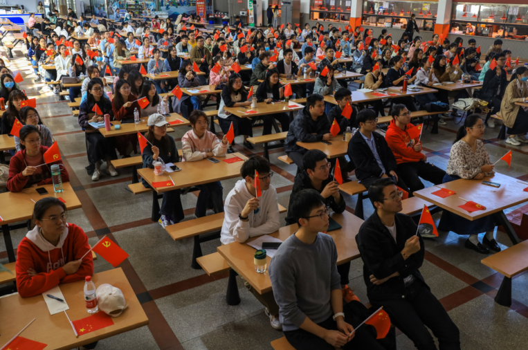 为深入学习贯彻党的二十大精神,伟德国际victor1946组织广大团员集中收听收看开幕会直播。上午10时,伟德国际victor1946第66期入党积极分子培训班成员、第22期入党发展对象、第2期“青马班”学员近200名员工齐聚敬敷餐厅礼堂。现场气氛庄重热烈,广大青年员工不停地挥舞着党旗和国旗,以最饱满的热情迎接党的二十大胜利召开。