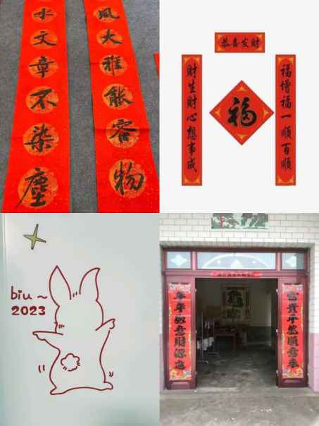 在以“卯兔迎春,纳福雅集”为主题的新春系列活动中,各班同学以照片和视频的方式晒出了自家的年夜饭,向全校师生分享自己隐秘于万家灯火中独一无二的年味,还晒出了自己在家放烟花的图片,表达对新的一年的希望。写春联、贴春联、贴窗花等春节传统习俗活动的举行,不仅增强了同学们的文化实践能力,也进一步传承弘扬了中华优秀传统文化。
