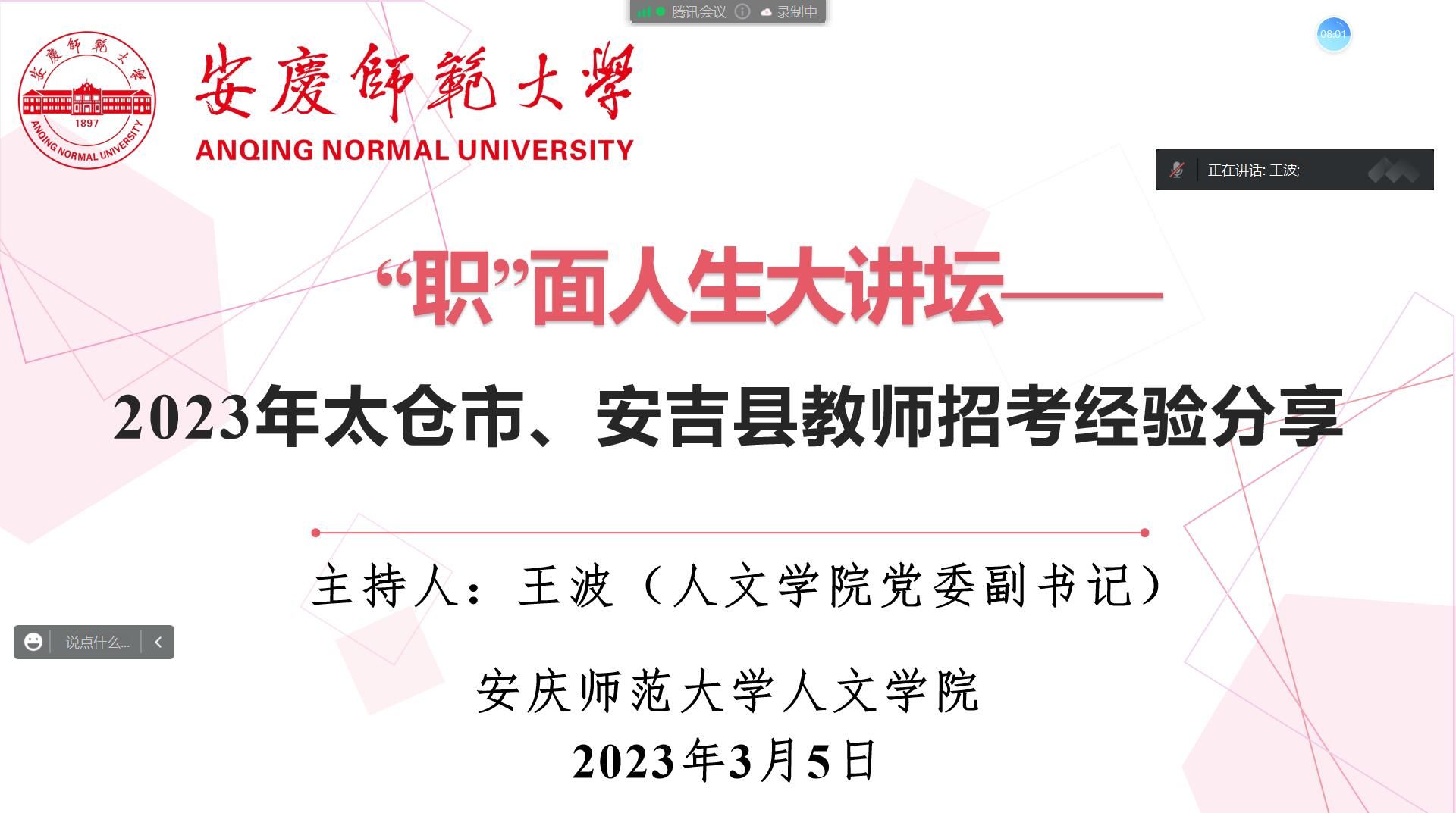 为有效落实公司2023届毕业生就业工作要求,强化工作措施、抓好就业服务,3月5日,公司召开2023年太仓市、安吉县教师招考经验分享线上交流会。此次会议由伟德国际victor1946党委副书记王波主持,邀请了2021届毕业生董雪奇,2022届毕业生周徐丽、章颖三位招考成绩优异的教师分享备考经验、为同学们答疑解惑,2023届毕业生百余人参加了会议。