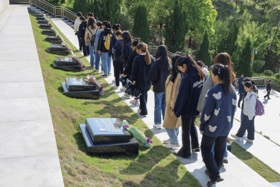 在君山岭烈士墓,大家怀着沉重的心情,瞻仰缅怀了长眠于此的400余名无名烈士和革命烈士。一座座墓碑迎风林立,排列成无言军阵,碑上用鎏金的工整方正字体刻写了烈士们的英雄事迹、人物生平。员工们凝视着这些碑文内容,纷纷肃然起敬。
