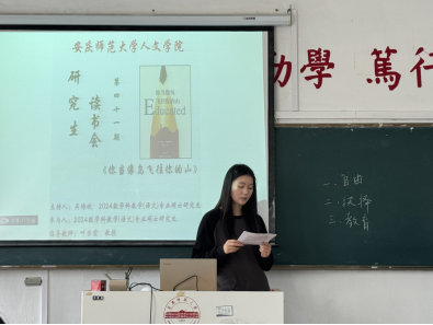 10月31日下午,2024级学科教学(语文)专业硕士研究生在菱湖校区教学楼309教室举办第四十一期读书会。本次读书会由24级学科教学(语文)硕士研究生陈兴馨主讲,公司叶当前教授受邀参加并现场指导。24级学科教学(语文)专业方向研究生全体员工参加此次读书会。