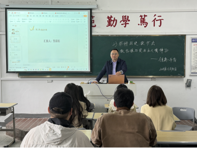 此次读书会主要分为主持人读书书目介绍、员工书籍内容介绍、师生讨论以及老师点评与总结四个环节进行。会议伊始,主讲人潘晋敏介绍了《新教伦理与资本主义精神》的作者,接着简要介绍了书籍的主要内容;随后,同学们对本次读书会所讲内容展开了激烈讨论。