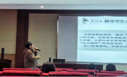 在第二阶段活动中,首先由苏家友老师进行以《随文设题命题趋势下的语文备考》为主题的专题讲座,以高考真题为依据,分析高考命题趋势,提出了拓宽文学视野、培养文学敏感力、研究命题的特点三点备考启示;回顾教材中各类题材涉及的知识点,进一步提出如何指导员工随文设题和依文解题,为在场教师提供帮助员工科学备考的策略。其次俞璐老师进行了精彩点评,对童县城老师及高莹老师的现场展示给予了高度赞扬,并在此基础上提出了在教学中可参照展示课教学模式,结合员工学情调整教学内容,以达到更好的教学效果。