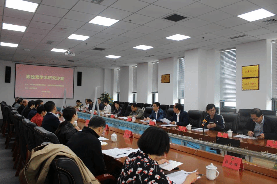 随后,研究会会员代表和公司教师代表分别围绕“再读新文化运动宣言《敬告青年》”“中国近现代思想文化谱系中的陈独秀”“安庆南水关陈延年、陈乔年烈士故居旧址保护与恢复经过”等内容作重点交流发言,董根明教授对上述发言逐一作学术点评,并就陈独秀研究现状和研究重点提出意见和建议:一要解放思想,要在陈独秀及其相关历史人物群体的研究上做好、做足、做大文章;二要善于利用安庆的地缘优势,将安庆打造成为全国陈独秀研究的一个高地;三要在资料汇集整理上下足功夫,在扎实的史料基础之上将陈独秀研究推向深入;四要拓展学术研究视角,以学界认可的学术规范、学界认同的研究方法,与全国乃至全球陈独秀研究的学者展开高层次对话。
