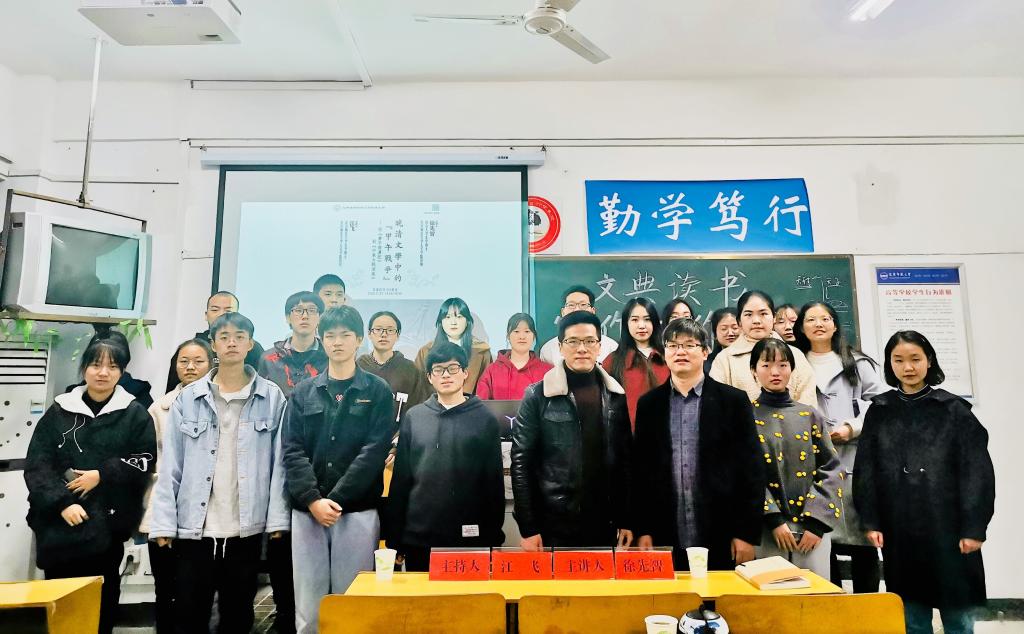 徐先智老师首先从史学的角度讲述了古代天朝“朝贡体系”的建立与崩溃,阐述了“朝贡体系”下古代国人“自我中心”主义的世界观;而后从史学层面过度到文学层面,以“诗歌”和“小说”两大文学形式为主线,细致地阐述了甲午战争下的文学表达。随后,徐老师着重对《梦平倭虏记》和《中东大战演义》两部小说进行了文本分析,阐明其虚实相生的艺术特色和“息干戈求富强”的爱国理性。徐老师用严谨的逻辑与声情并茂的解说,从历史的角度看文学,从文学的角度看历史,描绘了一幅晚清历史与文学交相辉映的画卷。江飞教授在评议环节指出,历史从未过去,战争从未走远,我们每一个人都应铭记历史、反思历史,从沉痛的历史教训中汲取经验,服务于当下的现代化建设和民族复兴的伟业。随后,徐老师就多位同学的问题进行了一一解答,再次强调当今时代的青年人应牢记历史,理性爱国,热爱和平,反对战争。