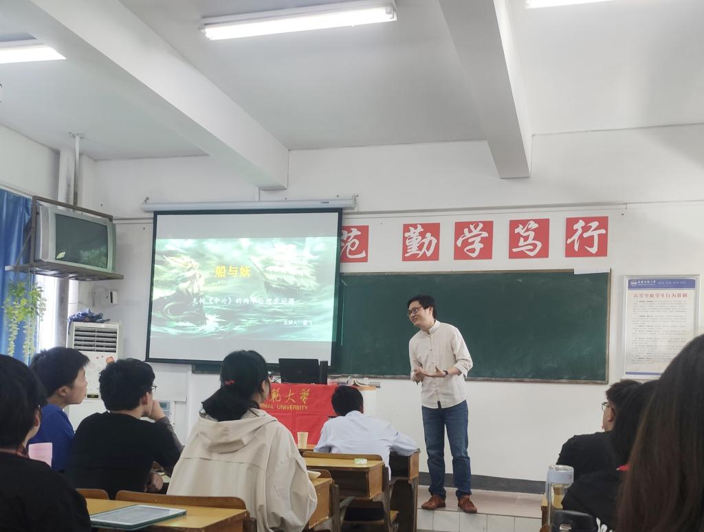 5月21日下午, 伟德国际victor1946在211教室举办了第五期“菱湖 学术沙龙”讲座。本次讲座的主题为“船与妖——龙树《中论》的两个伦理学问题”,由伟德国际victor1946讲师董飞博士主讲,李正君博士主持,伟德国际victor1946部分本科生、研究生参加。