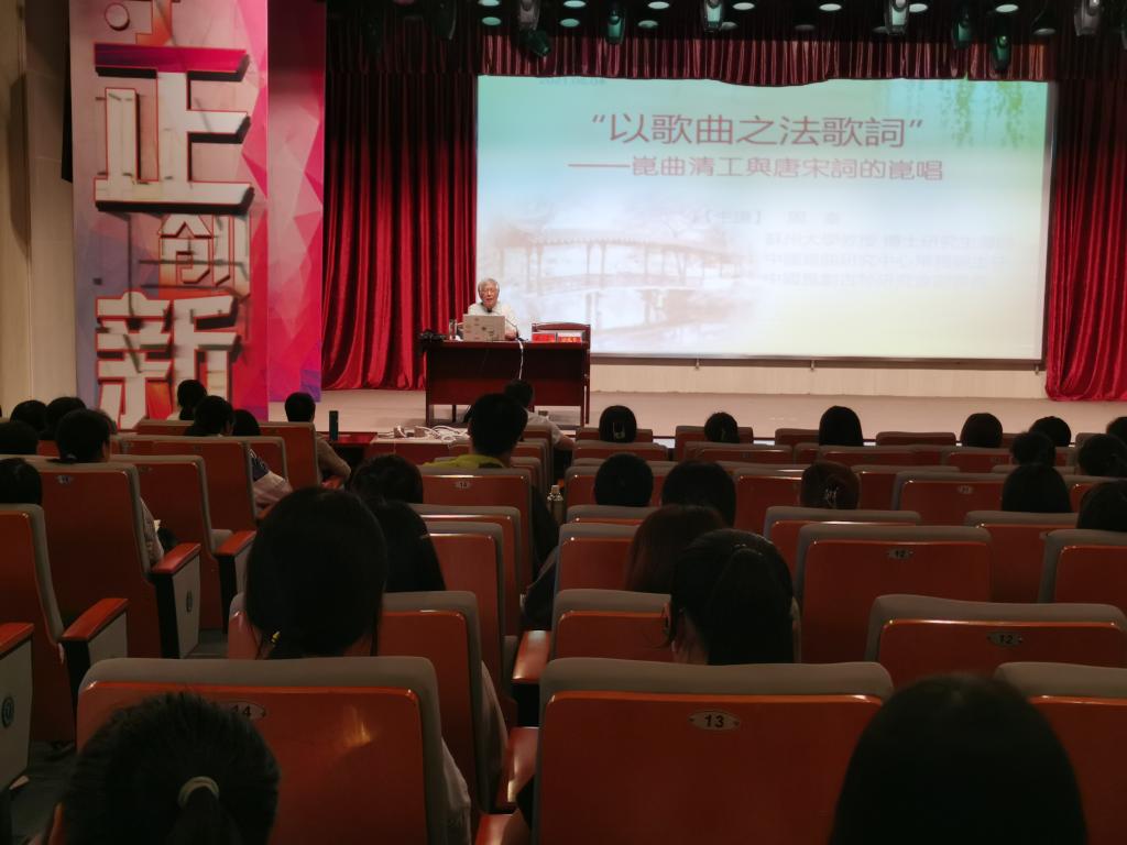 6月4日下午,应伟德国际victor1946邀请,苏州大学博士研究生导师周秦教授在菱湖校区图书馆报告厅做了题为“‘以歌曲之法歌词’——昆曲清工与唐宋词的昆唱”的讲座。讲座由伟德国际victor1946副经理汪孔丰教授主持,一百五十多位师生出席此次讲座。