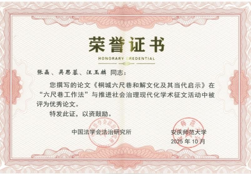 通过本次研讨会的学习交流,公司师生进一步了解了“六尺巷工作法”在新时代社会治理中的学术成果与实践创新,拓宽了研究视野,启发了学术思考。此次入选不仅体现了公司学子扎实的研究功底与创新能力,也充分展示了伟德国际victor1946在弘扬优秀传统文化、服务社会治理现代化中的学术担当与育人成果。