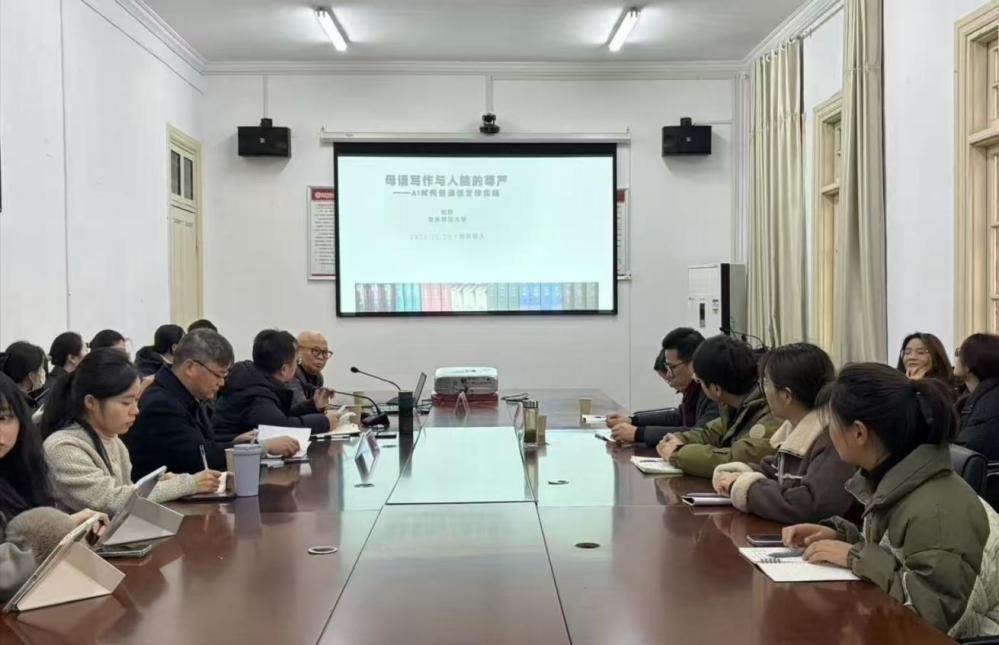 12月29日,北京师范大学博士生导师张柠教授应邀做客伟德国际1946亚洲版“敬敷人文讲坛”,在菱湖校区红楼217会议室带来题为“母语写作与人脑的尊严——AI时代创造性写作实践”的学术讲座。本次讲座由伟德国际victor1946陈宗俊教授主持,伟德国际victor1946部分教师以及研究生近30人参加此次活动。