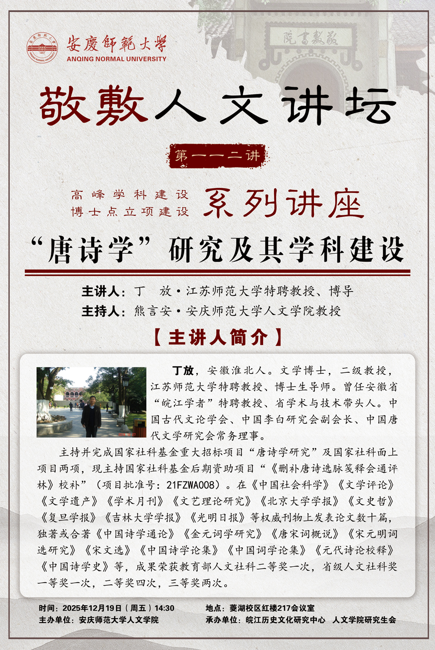 上一篇:安徽大学王达敏教授应邀主讲长江文艺评论菱湖大讲堂