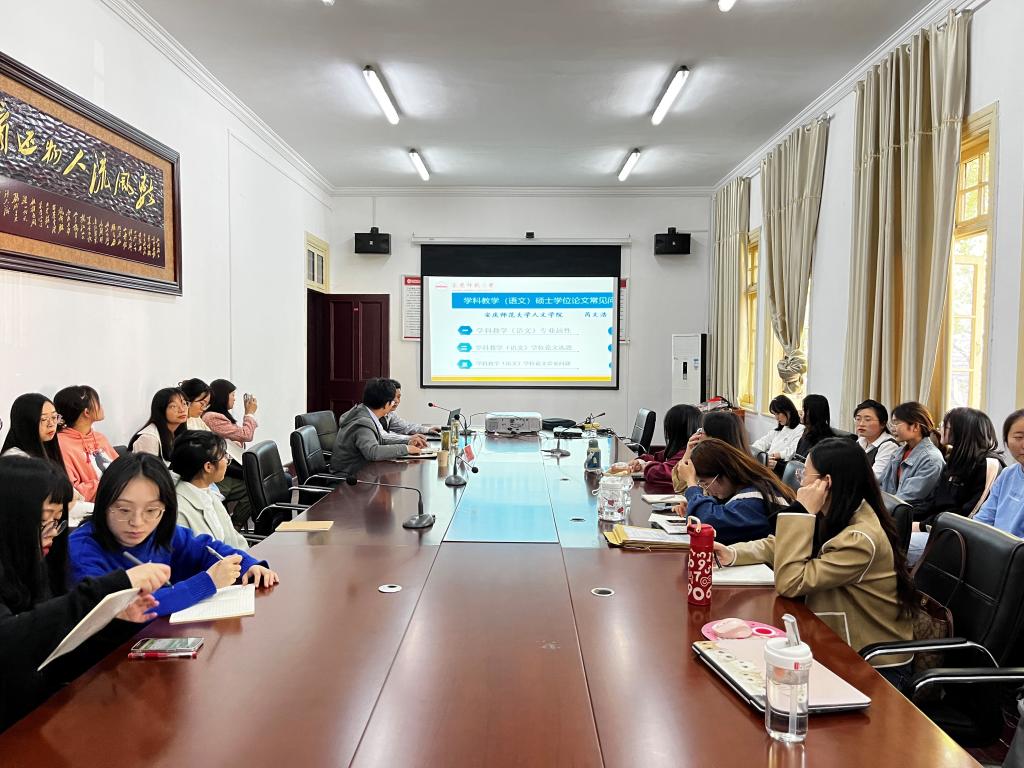 10月16日下午3点,伟德国际victor1946第二十期“菱湖•学术沙龙”在红楼二楼会议室顺利举行。活动由伟德国际victor1946副经理周红兵副教授主持,芮文浩副教授作了题为《学科教学(语文)硕士学位论文常见问题例析》的讲座,2021级和2022级学科教学(语文)硕士生共计40余人参加了本次学术沙龙。