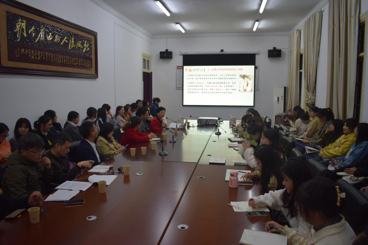 10月28日晚,“敬敷人文讲坛”第21期在红楼会议室顺利举行。安徽师范大学文公司俞晓红教授应公司和科研处邀请作题为“《红楼梦》整本书阅读与文学教育”的讲座,讲座由伟德国际victor1946副经理周红兵主持,伟德国际victor1946部分教师、学科教学(语文)硕士研究生和部分本科生参加本次讲座。俞教授从《红楼梦》整本书阅读的提出、《红楼梦》整本书阅读的要义和《红楼梦》整本书阅读的价值三个方面展开分析。