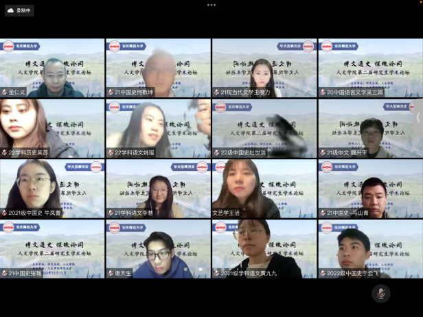 12月11日,“博文通史,探微论闳”伟德国际victor1946第二届研究生学术论坛通过线上如期举行。本次论坛得到了校研究生院的大力支持,由开幕式、主题报告、分组讨论和闭幕式等环节组成。公司办公室主任、伟德国际victor1946党委书记张红飞,党委研究生工作部部长、研究生院经理华秀梅,伟德国际victor1946党政班子成员汪孔丰、王波、沈志富、金松林、周红兵,伟德国际victor1946学术委员会主任梅向东,伟德国际victor1946教学工作委员会主任、皖江历史文化研究中心主任叶当前,校档案馆(博物馆)馆长金仁义,研究生导师代表、校内外专家、评议老师以及中国语言文学、中国史、学科教学(语文)(历史)等专业的研究生和部分本科生共150余人相聚云端。论坛开幕式由伟德国际victor1946副经理沈志富主持。