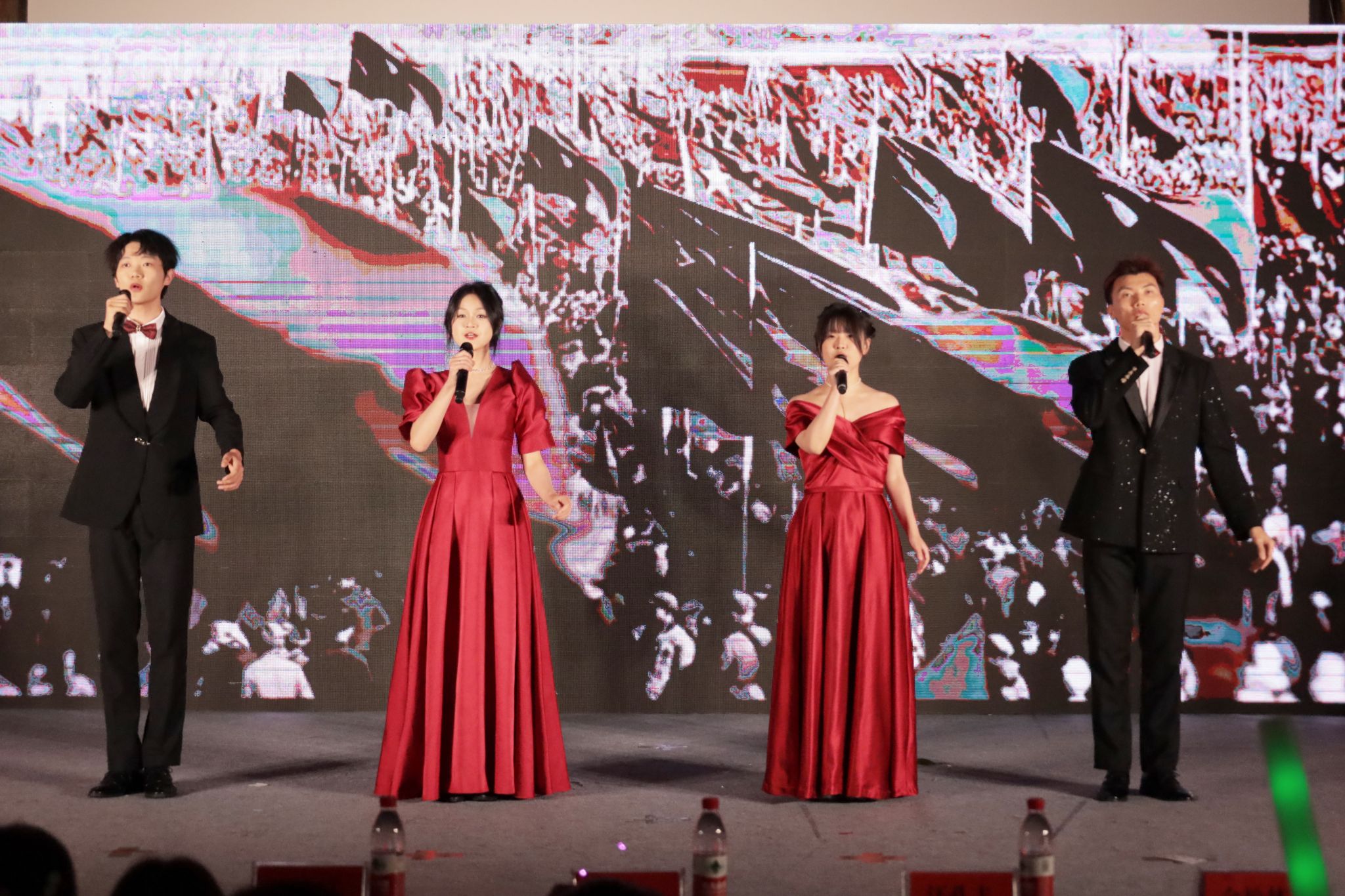 朗诵《百年交响》激情澎湃,引领现场观众“穿越时空”,回顾在中国共产党的领导下,中国从旧社会到新社会、从贫穷到富裕的百年发展历程都充分展现着公司师生对祖国的赞美与热爱;器乐合奏《九州同》体现了中国音乐的多样性和丰富性,表达了祖国团结和统一的意象,象征着中国各地文化的和谐共鸣;歌曲《上春山》通过悠扬的旋律和深情演唱,让在场师生感受到了春日的独特浪漫。