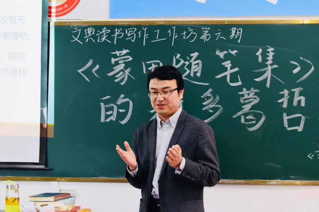 11月23日下午,四川大学比较文学与世界文学博士、文公司讲师程通于教学楼310教室,作了一场题为《回归内心的城堡——蒙田<随笔集>中的斯多葛哲学》的学术讲座。本次讲座是“文典读书写作工作坊”第六期,由工作坊负责人、文公司江飞教授主持,文公司吴伊琼博士、人文与社会公司董飞博士担任嘉宾。文史专业的70余位师生参加了本次活动。