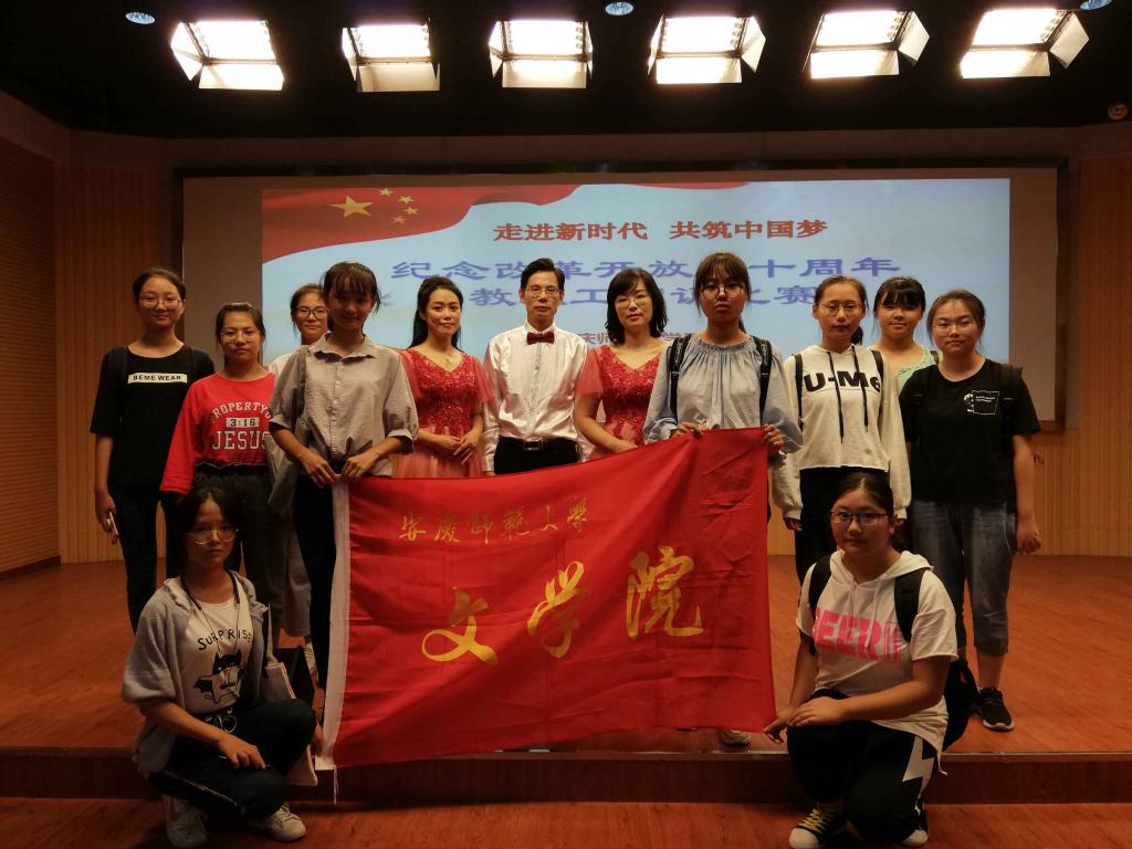 2018年9月28日,以“走进新时代,共筑中国梦——纪念改革开放四十周年”为主题,公司工会在龙山校区外国语公司503会议室举办了一场隆重的教职工朗诵比赛,文公司教师代表岳秀文、冯慧敏、熊言安在这场比赛中荣获一等奖。