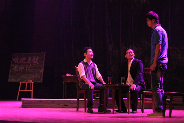 “这个历时两三个月,几十人不停努力,来回‘折腾’的话剧,终于结束了。”话剧社社员宛俊说。在结束展演回校的路上,宛俊沉沉地睡着了,所有人都理解,这个小伙子为话剧付出太多。