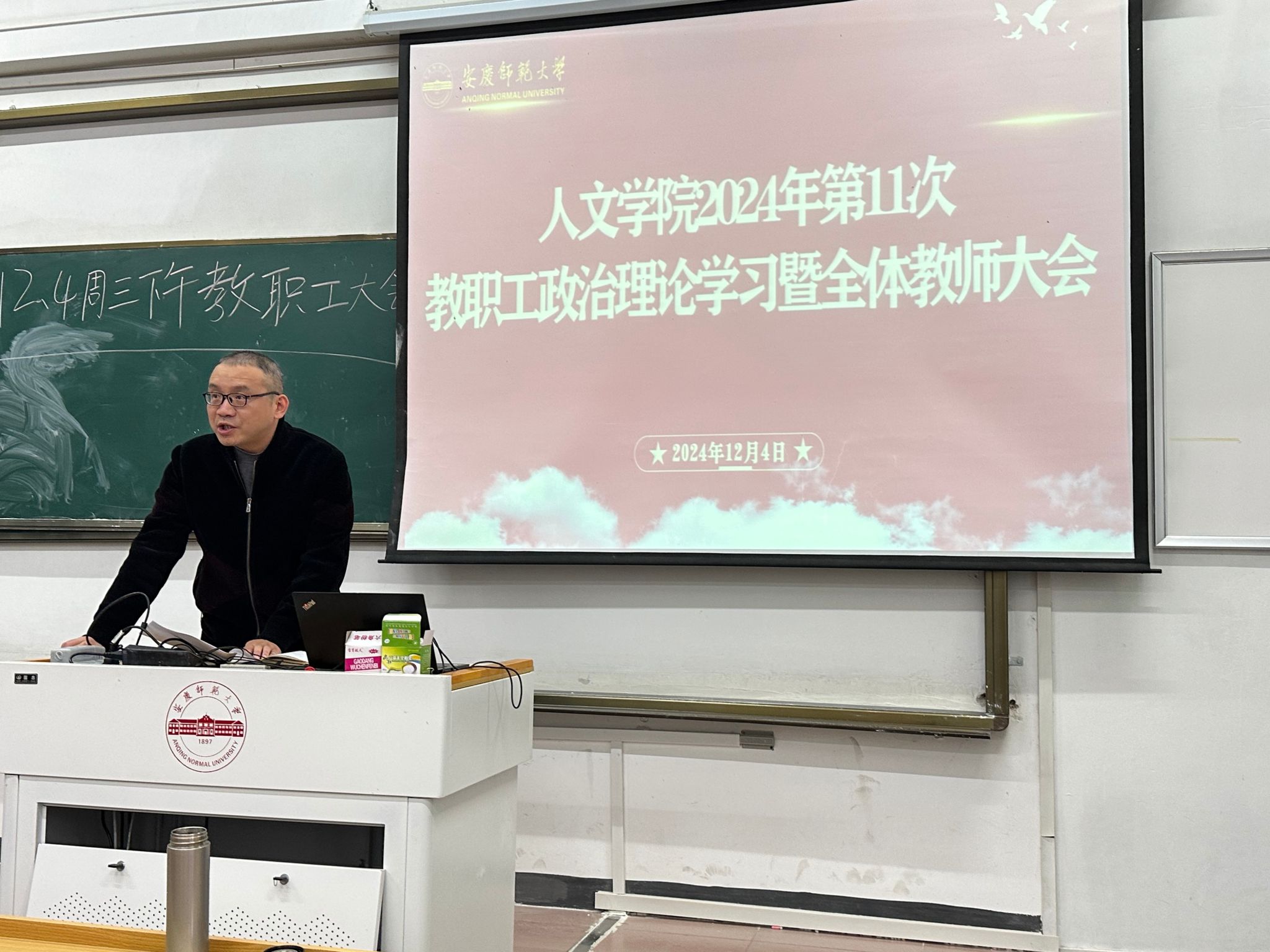 12月4日,伟德国际victor1946召开2024年第11次教职工政治理论学习会暨全体教师大会。经理汪孔丰主持会议,公司领导班子,全体教职工参加会议。