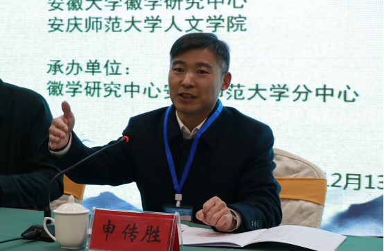 申传胜向出席会议的各位专家学者表示热烈欢迎。他简要介绍了公司历史、办学特色及学科平台建设情况。他强调,徽州文化是中华优秀传统文化的“活化石”,徽学是中国地域文化研究领域的显学,要进一步推动徽学研究各分中心之间的错位发展,挖掘整理安庆地区的徽学文献史料,加强皖江文化与徽州文化的流、互动及比较研究,助力安徽文化强省建设。他希望,各位专家学者围绕“多学科建构与多领域探索”的会议主题,深入交流互动、碰撞思想火花、提出真知灼见,共同为徽学研究的高质量发展作出新的更大的贡献。