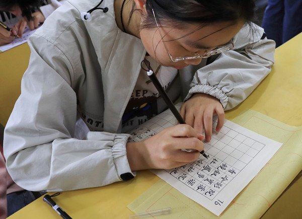 比赛现场气氛紧张而热烈,参赛选手准备充分、书写认真,达到了比赛举办初衷。参赛选手汉语国际教育专业2019级肖婉婷,虽然正式学习书法的时间不长,但因为对书法的喜爱,业余时间经常自己对着字帖琢磨。谈及参与“三字”比赛的感受时,肖雅娴说:“我觉得这次比赛不仅给我们提供了一个交流学习的平台,也能帮助同学们认识到掌握一手好字对于师范生来说是非常重要的。”参赛选手、汉语言文学专业2020级6班童俊英临摹《张黑女墓志》的魏楷作品最终赢得了评委老师们的一致称赞,获得了一等奖。赛后她说,“这是我上大学后从书法班学习的新字体,和我以前练习的小楷有一定的差异。这次比赛,还检验了我平时在书法上的学习能力和成果,让我发现自己的不足。”
