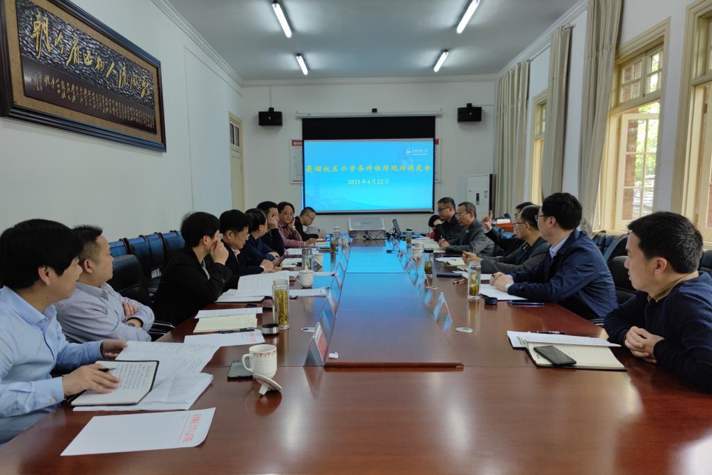 各相关部门负责人结合各自职能,就菱湖校区办学条件和服务保障进行了交流讨论,提出了相关意见和建议。会议就急需解决的有关问题进行了明确,有关重点事项将提交董事长办公会研究。