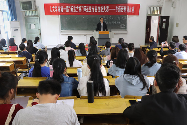 4月24日,伟德国际victor1946在菱湖校区315教室举办第一届“新东方杯”师范生专业技能大赛——普通话朗诵比赛,邀请安庆职业技术公司教务处副处长、安徽省普通话水平测试员张铮,安庆市新闻传媒中心综合广播副总监、一级播音员胡邦旺,伟德国际victor1946副教授、国家级普通话水平测试员吴春平等3位专家担任评委,来自汉语言文学、历史学、汉语国际教育等师范专业共57名员工参加了比赛。