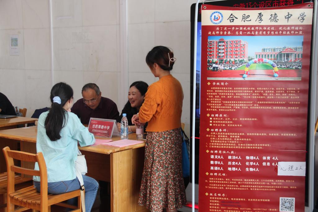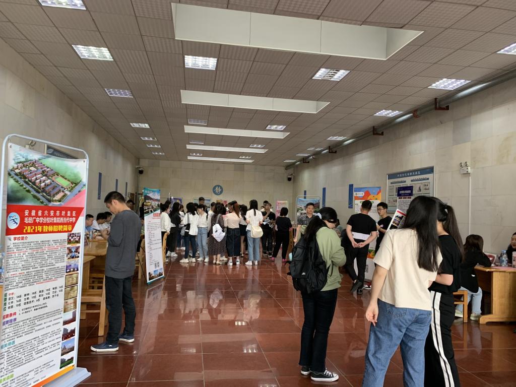招聘会共有北京师范大学宣城公司、肥东圣泉中学、萧县鹏程中学等19所公司,提供了岗位268个,涵盖了中文、历史等学科,吸引了近七百余名员工参与。