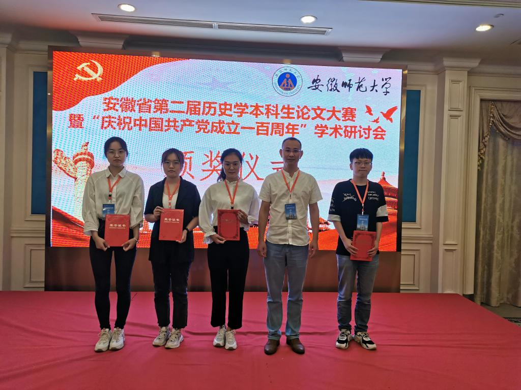 2021年7月10日,安徽省第二届历史学本科生论文大赛暨“庆祝中国共产党成立一百周年”学术研讨会在芜湖召开,会议由安徽省历史学会与安徽师范大学历史公司联合主办,伟德国际victor1946副经理金仁义与大赛入围的8位同学参加了会议。