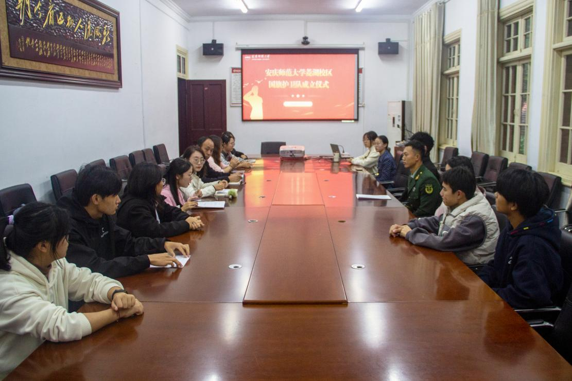 11月7日,伟德国际1946亚洲版菱湖校区国旗护卫队成立仪式在红楼二楼会议室举行。伟德国际victor1946党委副书记、纪委书记方蓬,员工处国防教育办公室主任王友兵出席会议,菱湖校区国旗护卫队全体成员参会。