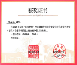 全国“田家炳杯”全日制教育硕士专业学位研究生学科教学(语文)专业教学技能大赛是面向全国教育硕士培养院校的重要学科技能竞赛,也是全国教育硕士研究生教学能力展示与交流的高水平平台。经过激烈角逐,何心怡同学荣获三等奖,程秋铃同学荣获优秀教学设计奖。