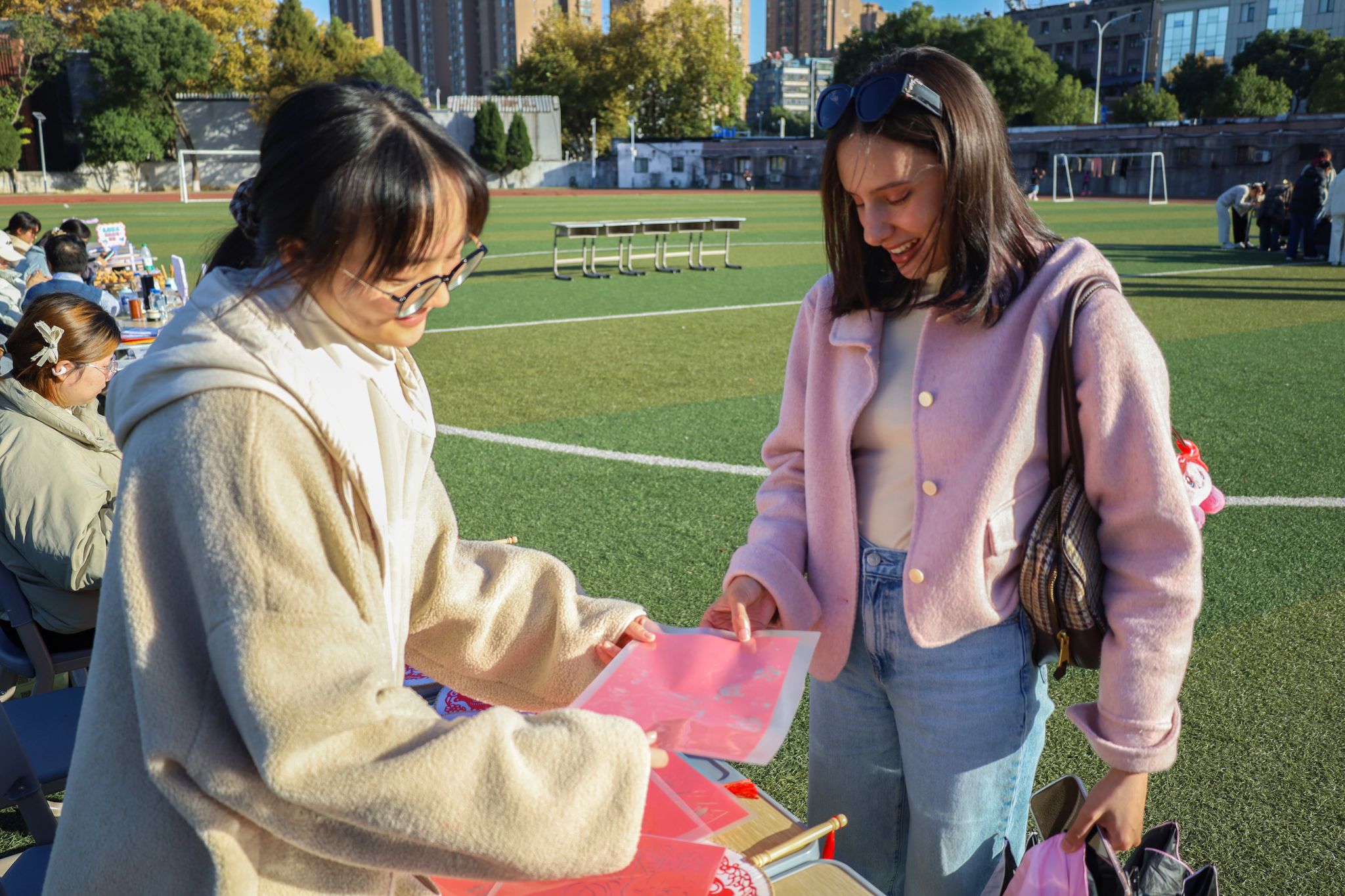 互动体验区同样热闹非凡。中国结编织摊位前,学子手把手传授编织技巧,让传统手工艺在指尖传承;茶艺体验区里,突尼斯研究生安美乐精准答出“红茶的英文名是 black tea”,在趣味问答中感受中国茶文化的国际传播力;扎染、烙画、汉服展示等展台前,中外员工驻足观赏、交流探讨,在亲身体验中拉近文化距离。活动负责人、伟德国际victor1946团委老师表示:“国际中文教育不仅是语言教学,更是文化传播的重要载体。我们希望通过文化节这样的平台,让中华文化走出去、让世界文化走进来,培养更多促进文明互鉴的‘文化使者’。”