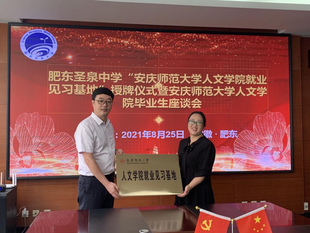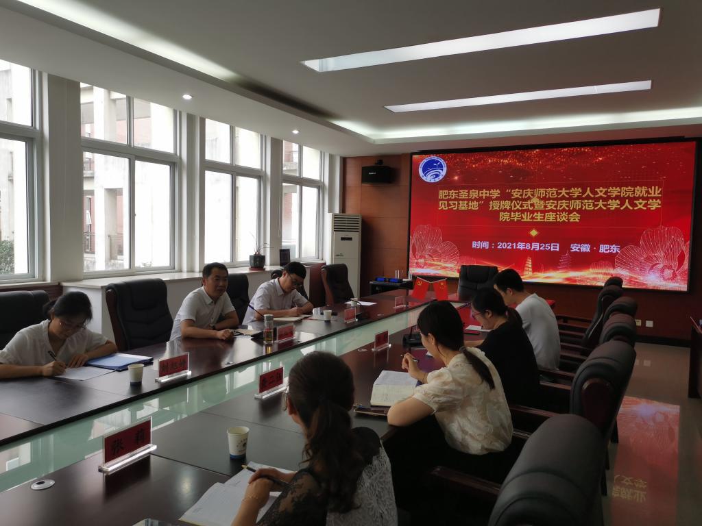 党委副书记王波代表公司为肥东圣泉中学授予“伟德国际victor1946就业见习基地”牌匾。与会人员就人才培养质量、就业见习基地建设等方面展开了深入交流。