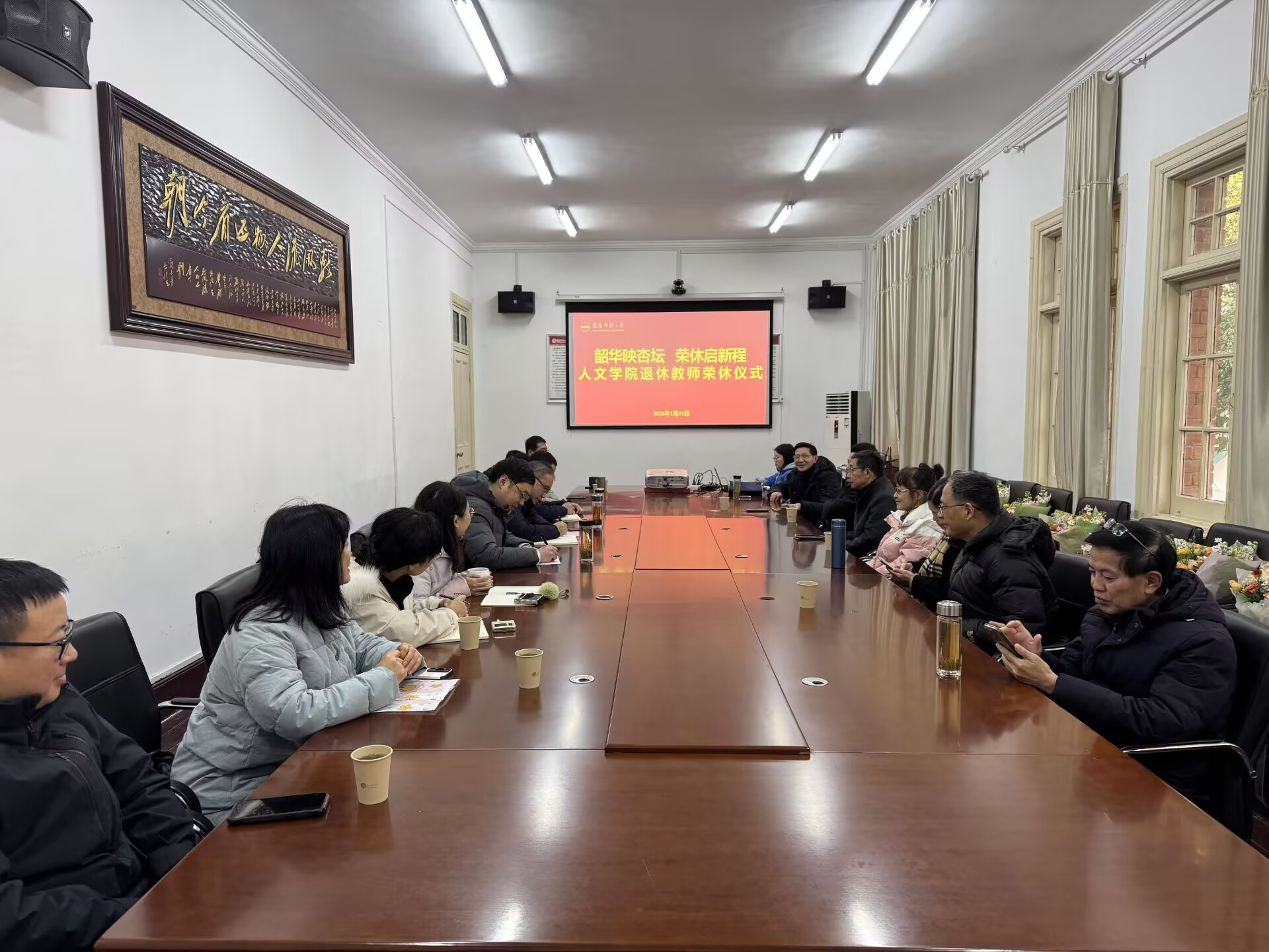 经理汪孔丰代表全院师生向荣休教师致以最崇高的敬意和最衷心的感谢。他指出,七位荣休教师将最美好的年华、最宝贵的智慧奉献给了伟德国际victor1946的教育事业,是公司发展壮大的奠基人、建设者与见证者。老师们始终秉持“学高为师,身正为范”的职业准则,深耕教学一线、潜心学术研究、用心培育人才,为公司建设发展筑牢根基。荣休教师不仅为全院教师树立了职业标杆,更成为激励一代代人文学子砥砺前行的精神动力。汪孔丰表示,荣休不是终点,而是人生旅途的全新起点,衷心期待老师们常回“家”看看,继续发挥经验优势,为公司高质量发展传经送宝、建言献策,同时祝愿老师们退休生活多姿多彩、身体健康、阖家幸福。