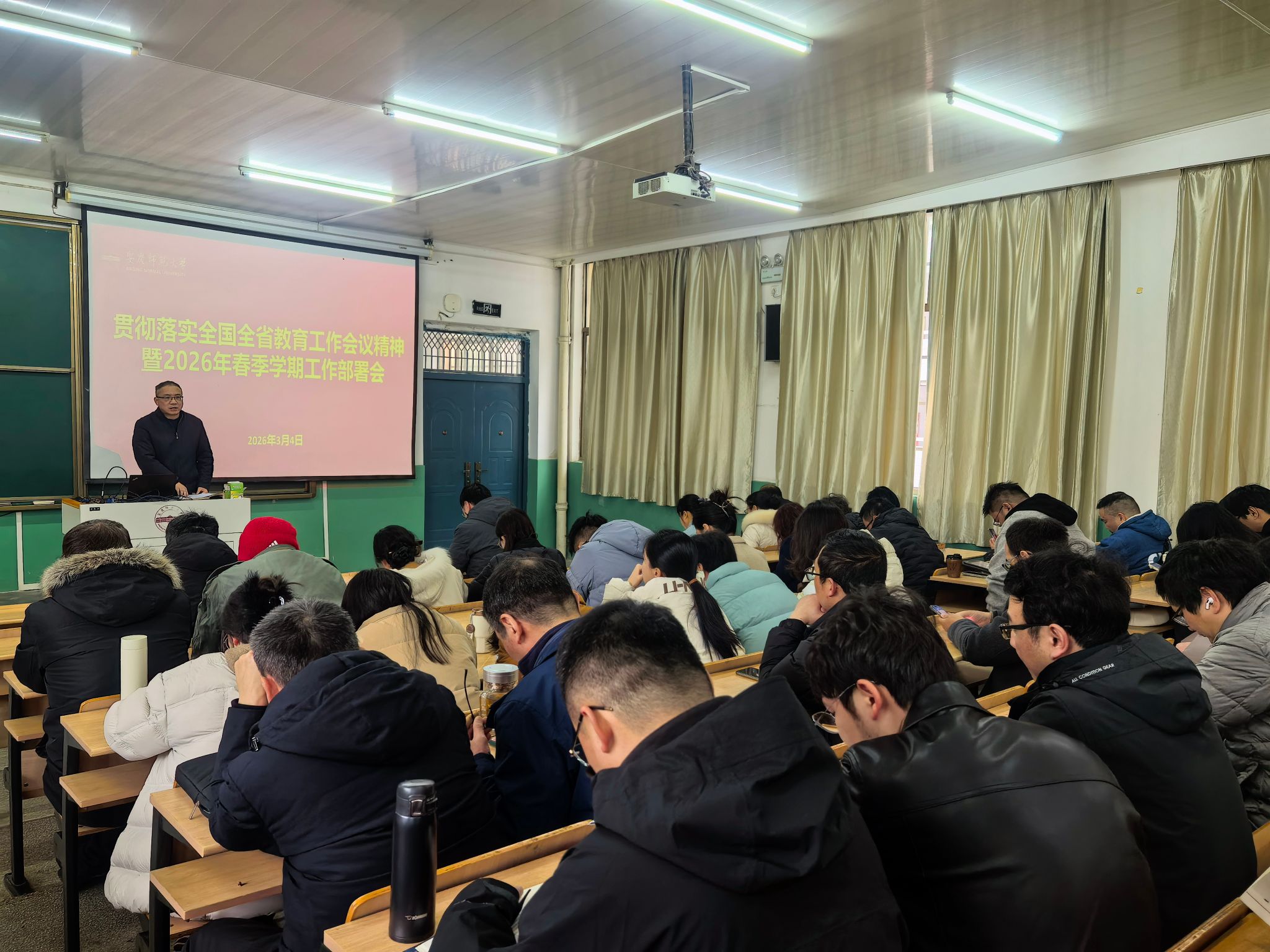 3月4日,伟德国际victor1946在菱湖校区理二阶教室召开2026年春季学期开学工作会议。公司领导班子及全体教职工参加会议,经理汪孔丰主持会议。
