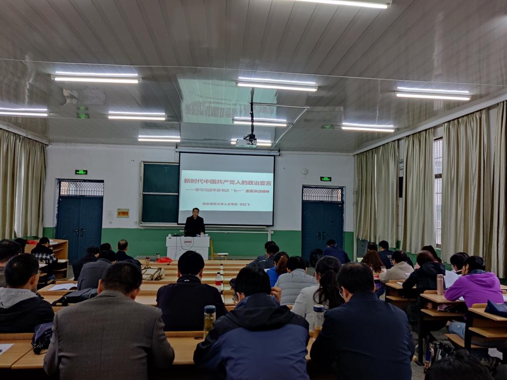 10月21日,伟德国际victor1946在理化楼三楼阶梯教室举办习近平总书记“七一”重要讲话精神专题宣讲报告会。公司党委书记张红飞在会上作专题报告,公司全体教职工参加会议,会议由党委副书记王波主持。