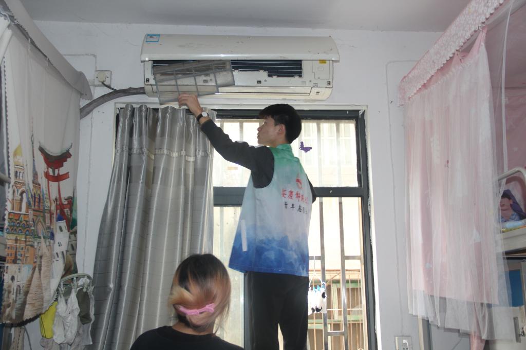 活动负责人高波说:“考虑到女生们因为身高不够,难以清洗空调滤网,所以招募了志愿者帮助清洗滤网。灰尘侵入空调,空调制热效果会变差,滤网不干净也会给人体带来伤害,本次活动既能提高空调使用能效,又能提高同学们的日常生活质量。”