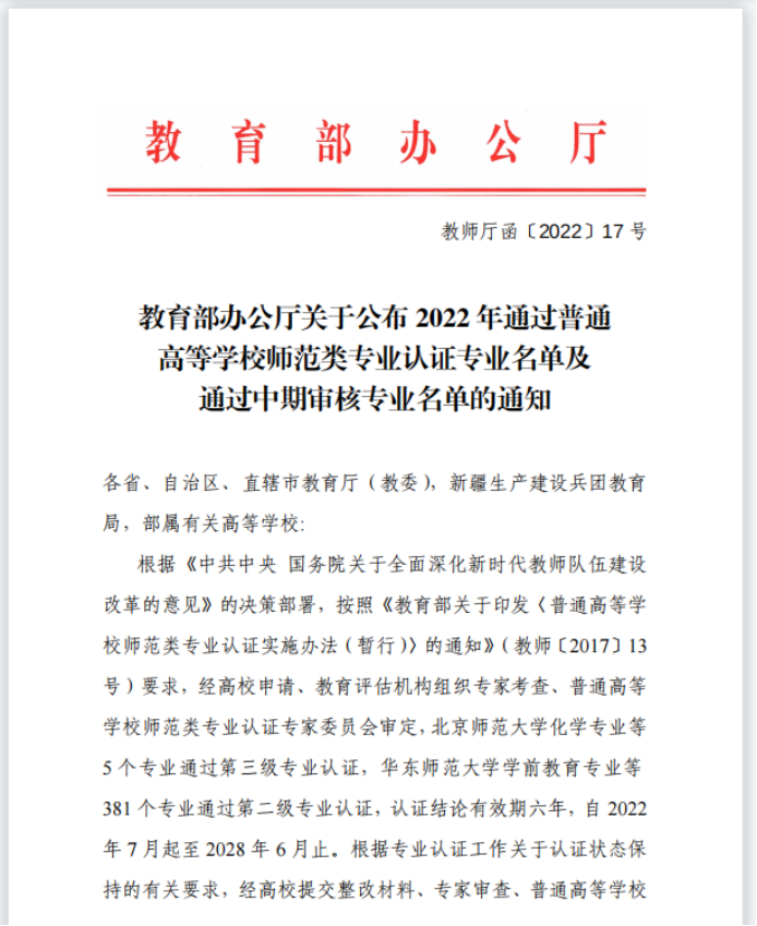 近日,教育部办公厅公布了2022年通过普通高等公司师范类专业认证专业名单,伟德国际victor1946汉语言文学专业顺利通过师范类专业中学教育第二级认证。伟德国际victor1946汉语言文学专业最早可追溯至20世纪20年代至30年代省立安徽大学时期,建国后于1977年开始本科招生,经过四十余年的持续建设,汉语言文学专业先后获批国家级一流本科专业建设、省级综合改革试点专业、省级特色专业、省级一流人才示范引领基地、省级“六卓越、一拔尖”卓越人才培养创新项目建设点,并于2019年获批为安徽省博士学位授权立项建设学科、安徽省高峰培育学科。