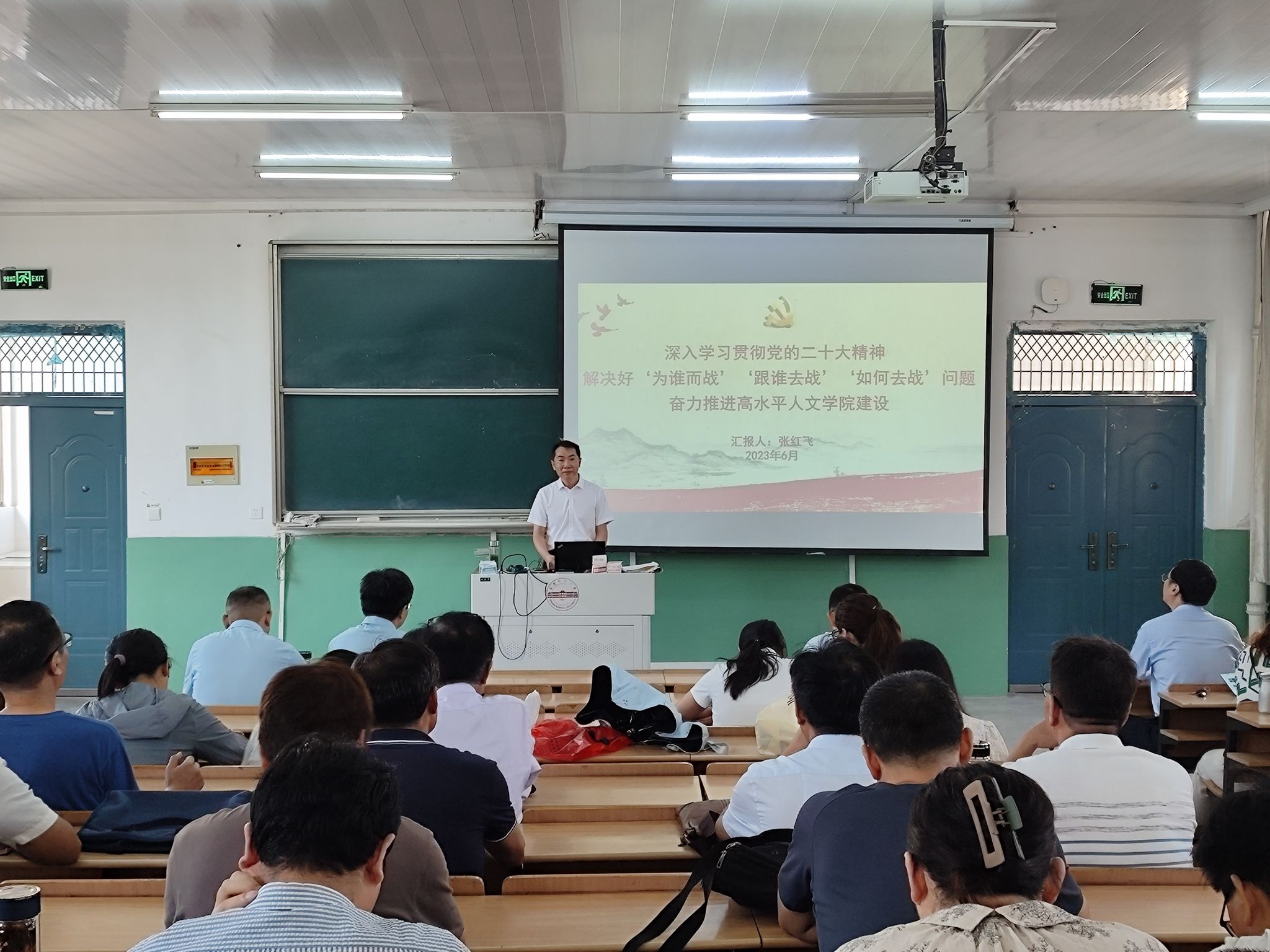 七一前夕,伟德国际victor1946党委书记张红飞以“深入学习贯彻党的二十大精神 解决好‘为谁而战’‘跟谁去战’‘如何去战’问题 奋力推进高水平伟德国际victor1946建设”为题为全体教职工讲授主题教育专题党课。