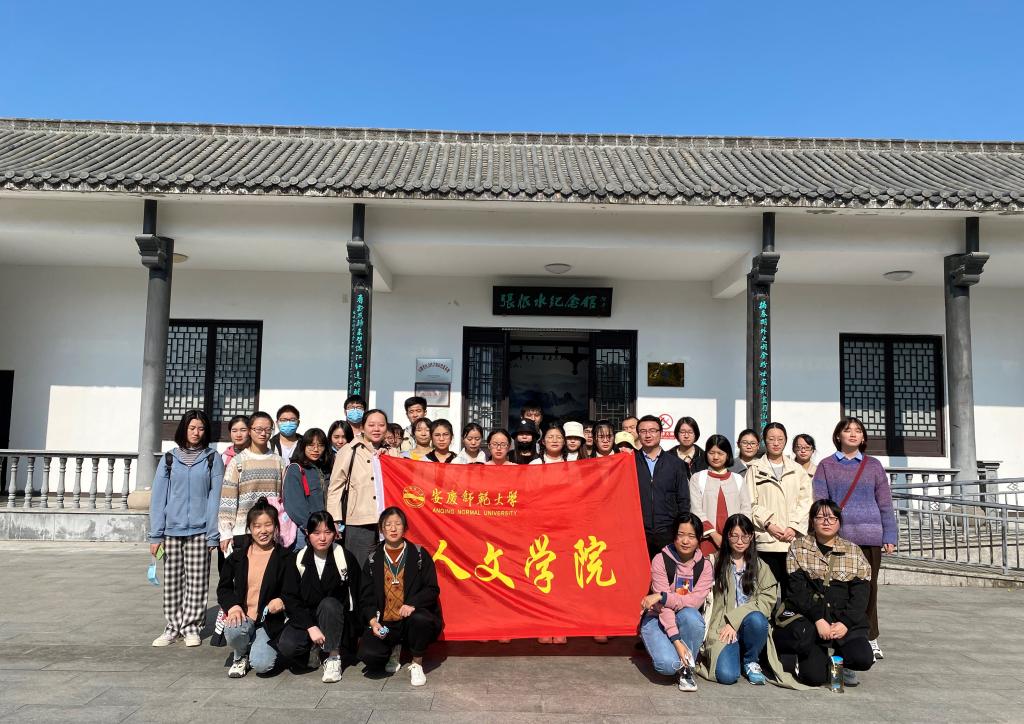 潜山别名“舒州”,素有“皖国古都、安徽之源、京剧之祖、黄梅之乡”的美誉。潜山市博物馆收纳了自春秋战国以来的众多文物——青铜器、古镜、生物化石等。中国现代文学史上“章回体小说大家”张恨水的纪念馆坐落其中。纪念馆内设张恨水陈列馆、墓室、铜铸像、恨水亭等。陈列馆内部分设“少年才俊”“新闻生涯”“创作成就”“人生情怀”“夕照青山”“故土情结”“传播与研究”七个部分,全面系统地展示张恨水先生的创作心路历程。张恨水一生创作了多部小说和大量散文、诗词、游记等,共3000余万字。师生们共同观摩一卷卷发黄的手稿,感受作者艰辛刻苦的创作历程。