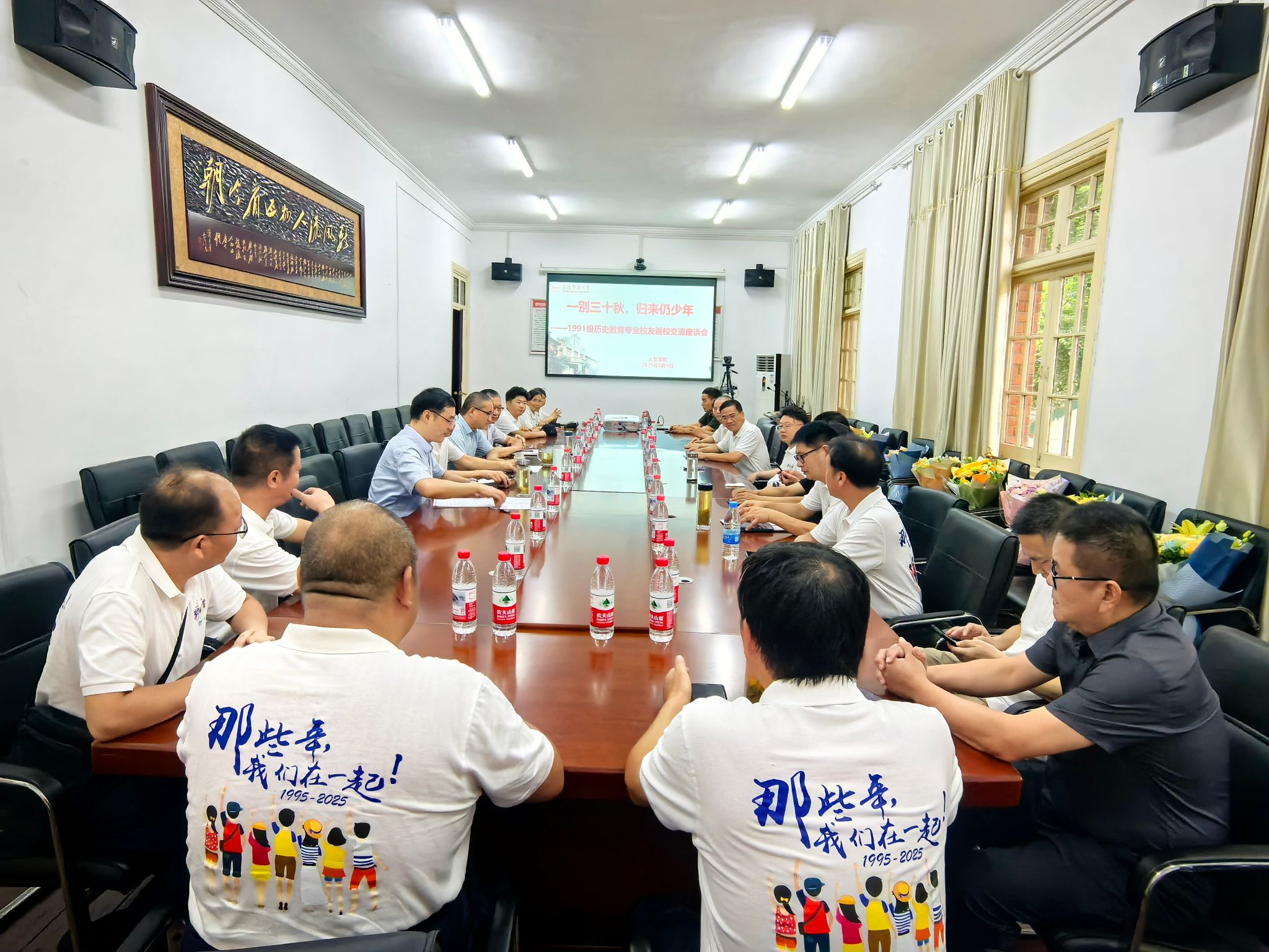 8月9日,1991级历史教育专业员工毕业三十周年返校活动暨交流座谈会在菱湖校区举行。伟德国际victor1946经理汪孔丰、党委书记王波、教师代表金仁义教授、辅导员方双六与20余位员工齐聚一堂,忆青春、话友谊、谋发展。会议由王波主持。